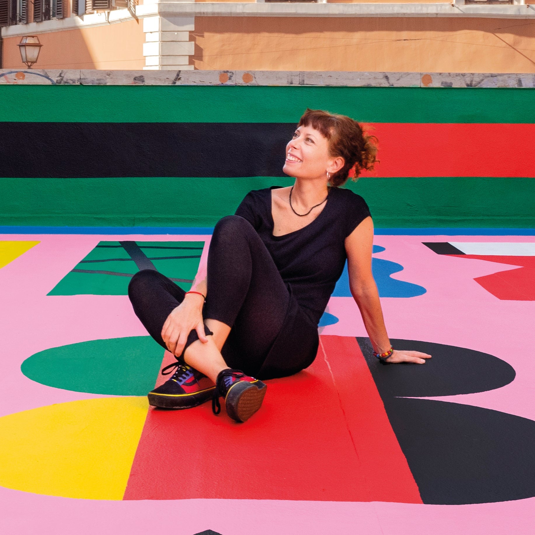 Camilla Falsini is a Roman artist and acclaimed muralist known for her bold, geometric style and vivid color palettes. Her work spans large-scale murals, editorial illustration, and design objects, blending minimal yet expressive forms with strong visual storytelling.